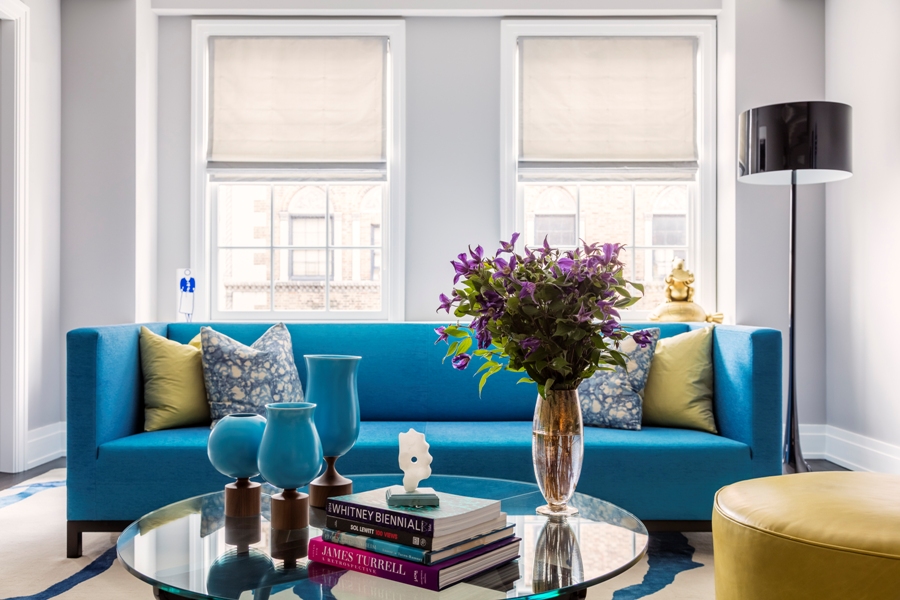 This pre-war Fifth Avenue apartment in Manhattan was gutted and renovated anew. Gorgeous modern artwork and accents of bold color fill every room, giving this duplex its fresh and vibrant personality.